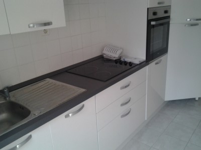 Appartement lumineux avec une cuisine fermée équipée et meublée avec une double pièce de vie lumineuse salon et salle à manger, une salle de bain avec une baignoire et un cellier et WC séparé, ainsi que 2 grandes chambres.